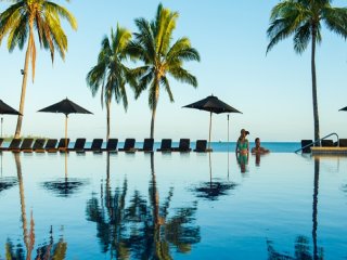 Our hotel is the awesome, oceanfront, 4-star Hilton with 7 pools including adult only. Hillton Fiji Beach Resort and Spa is ideally located on 2.5 km of beach on Denarau Island. Discover a paradise of sun, sea and sand at this relaxing resort. Indulge in a massage by the sea or choose from an array of treatments at the award-winning Pevonia concept spa. Every guest room offers a private terrace or balcony. Port Denarau Marina offers shopping, dining and entertainment, plus, if you're inclined, you can play the Denarau Golf Course. Check out my drone video of the hotel from our last trip.